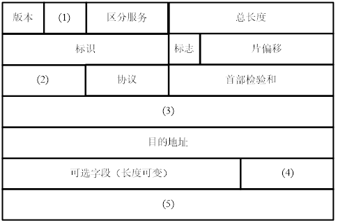 44. (填空题)下图是IP数据报的格式。请将以下内容填在相应的空格处:源地址、数据、生存时间、首部长度、填充。