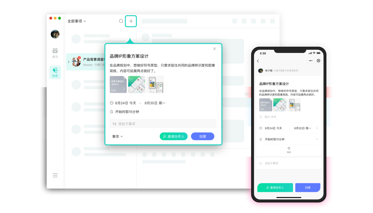 如果在记录事项的时候发现需要别人来协作,还可以点击「邀请协作人」给对方派发该事项,邀请TA可以共同完成任务。