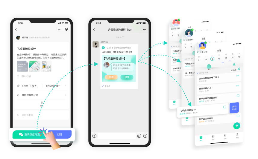 另外,「飞项」待办事项清单工具还会根据日程清单自动生成日报,通过应用端和微信推送,同时也会收到派发出去的事项的进展提醒,不仅可以避免遗漏重要事项,也能及时同步他人的进度,更好地安排自己的日程。