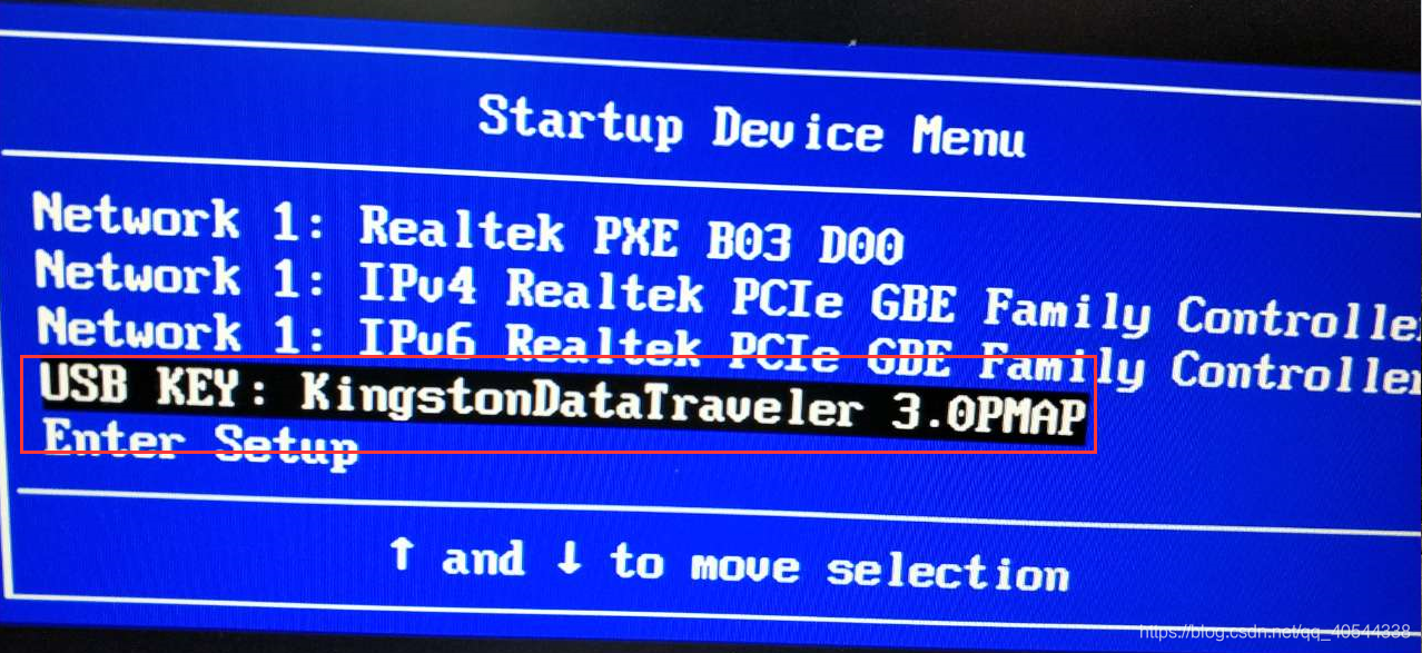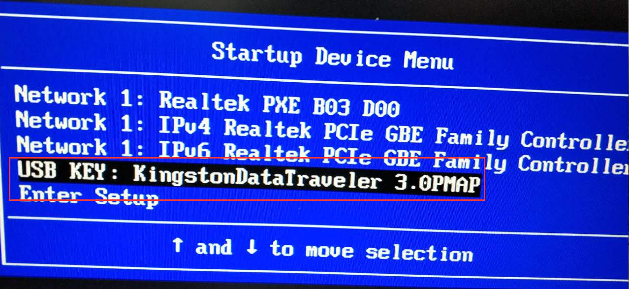 5、按下F10后重新启动后,不断的按下F11和F12,就会显示从哪里启动电脑,选择USBKEY(这个就是我们的老毛桃做的U盘)