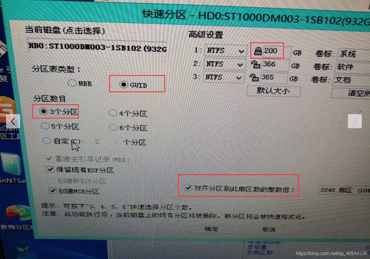 2、如果启动盘一直无法有作用,镜像做的是GUID的,重做系统选择的是MBR格式的,导致启动一直失败(现在最好都是用GUID来分割硬盘)