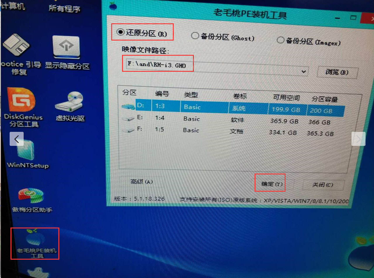 3、老毛桃做系统时候,镜像是GUID就使用GUID的,MBR的就用MBR的,否则容易出现错误