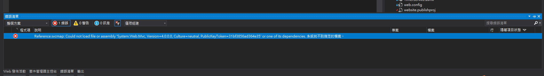 Could not load file or assembly ‘System.Web.Mvc...‘ or one of its dependencies. 系統找不到指定的檔案。