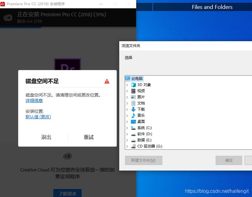 填到C盘只剩下1-2GB的时候,去安装Adobe的软件,