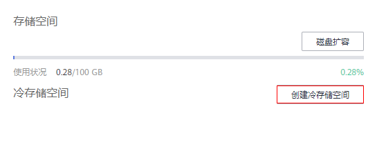 也可以在购买实例后,独立购买冷存储。进入实例详情页面,点击创建冷存储空间,如下图: