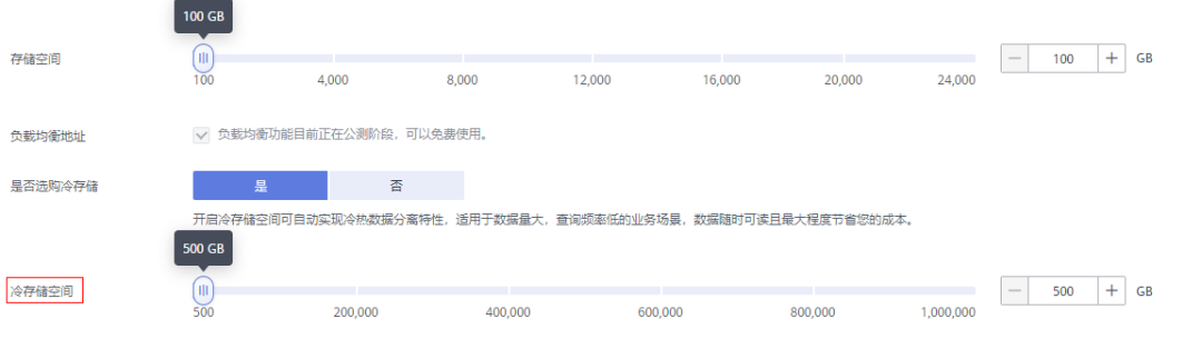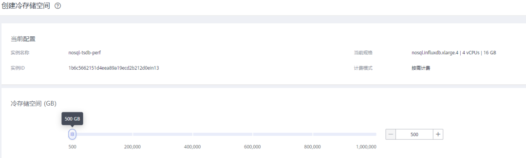 GaussDB(for Influx)支持一键购买冷存储空间,可以在购买实例时选择是否够买冷存储,选择“是”,可以根据业务需求选择冷存储的大小,具体如下图: