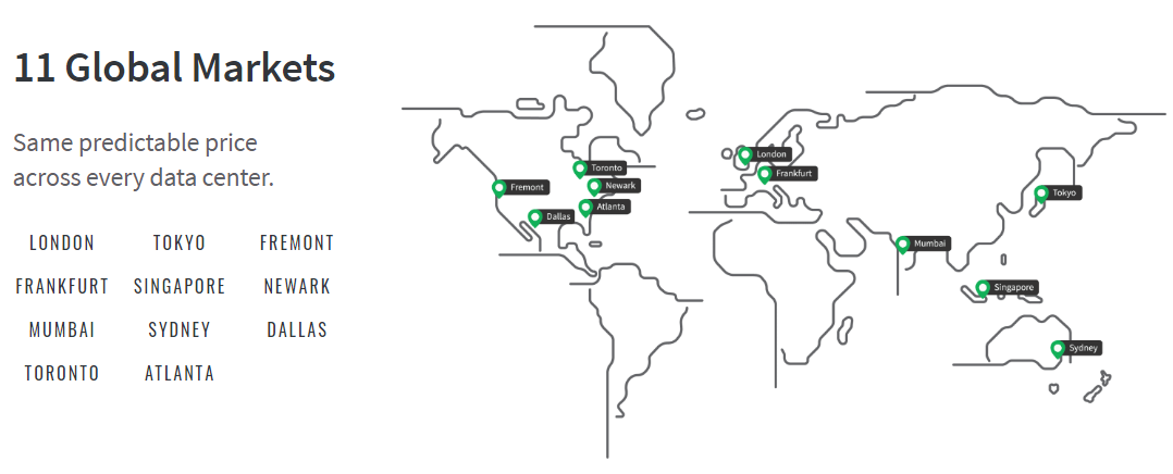 首先,Linode正在不断扩大其服务范围,它目前在5个地区有数据中心(北美、欧洲、亚洲、南亚和大洋洲)有11个服务器地点。它应该根据你的受众的位置进一步提高网站性能。