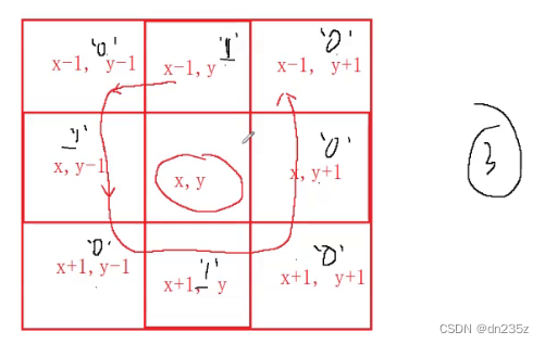 {//统计周围雷的数量,将雷设置为‘1’,非雷为‘0’,直接返回和再将字符数字转换为数字即可return(mine[x - 1][y] + mine[x - 1][y - 1] + mine[x][y - 1] + mine[x + 1][y - 1] + mine[x + 1][y] + mine[x + 1][y + 1] + mine[x][y + 1] + mine[x - 1][y + 1] - 8 * '0');