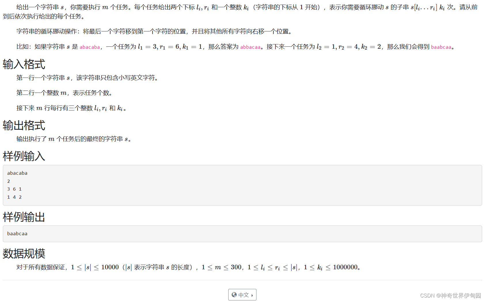 看到这题我就想起了队列。这题其实很简单,只要按照要求首尾循环挪动即可。但是由于挪动的次数比较多所以要对字符串的长度进行取余然后再挪动。