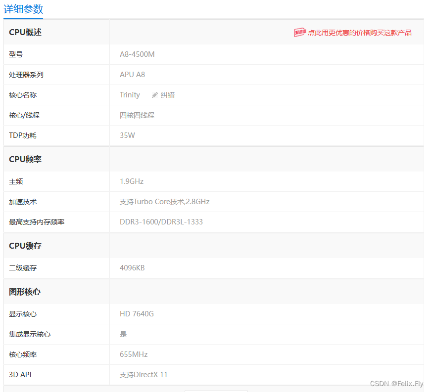 CPU:AMD当年叫APU,就是把CPU和显卡集成到一起,可以看到此处早年已经被我换成了A8-4500;