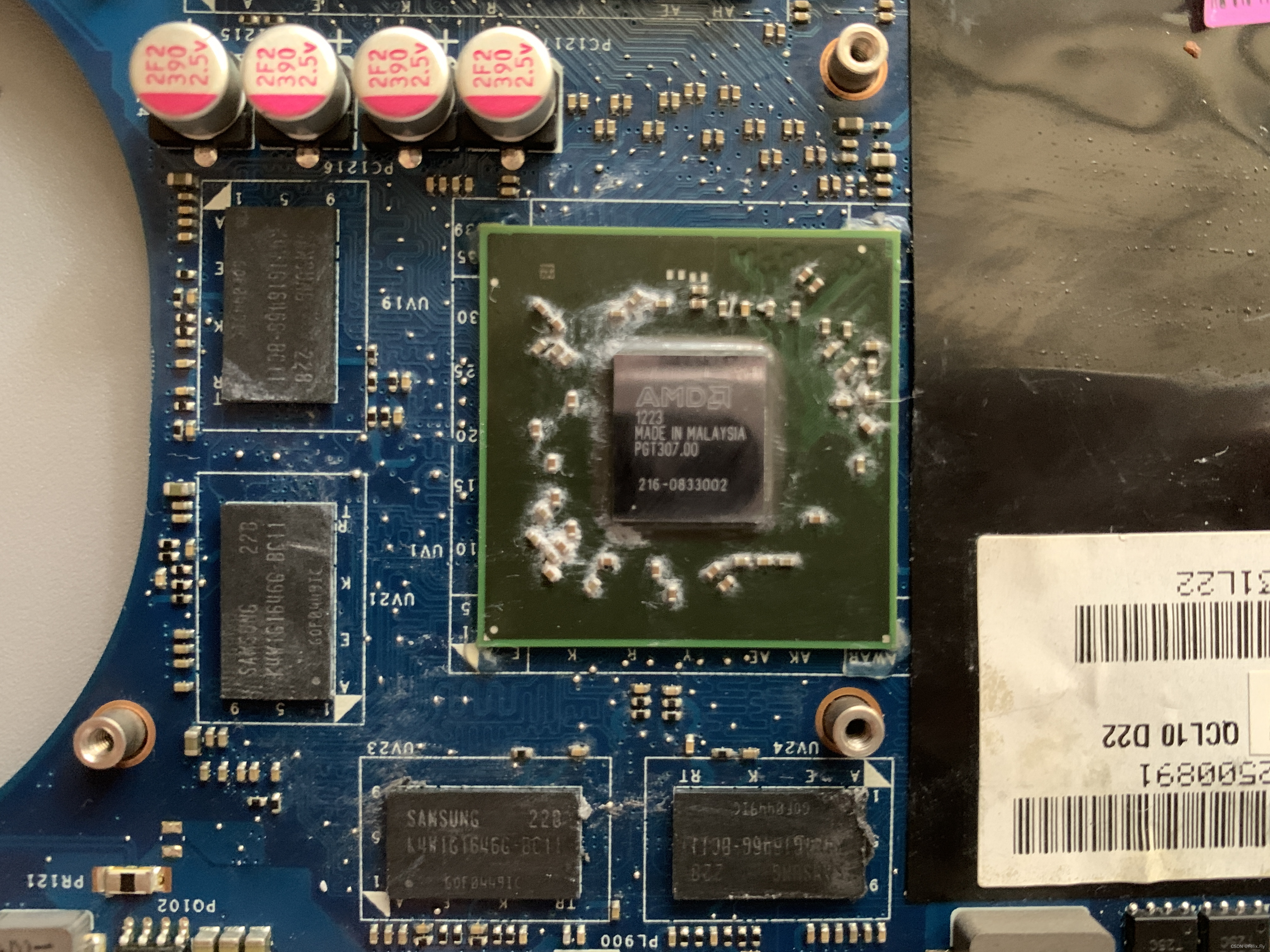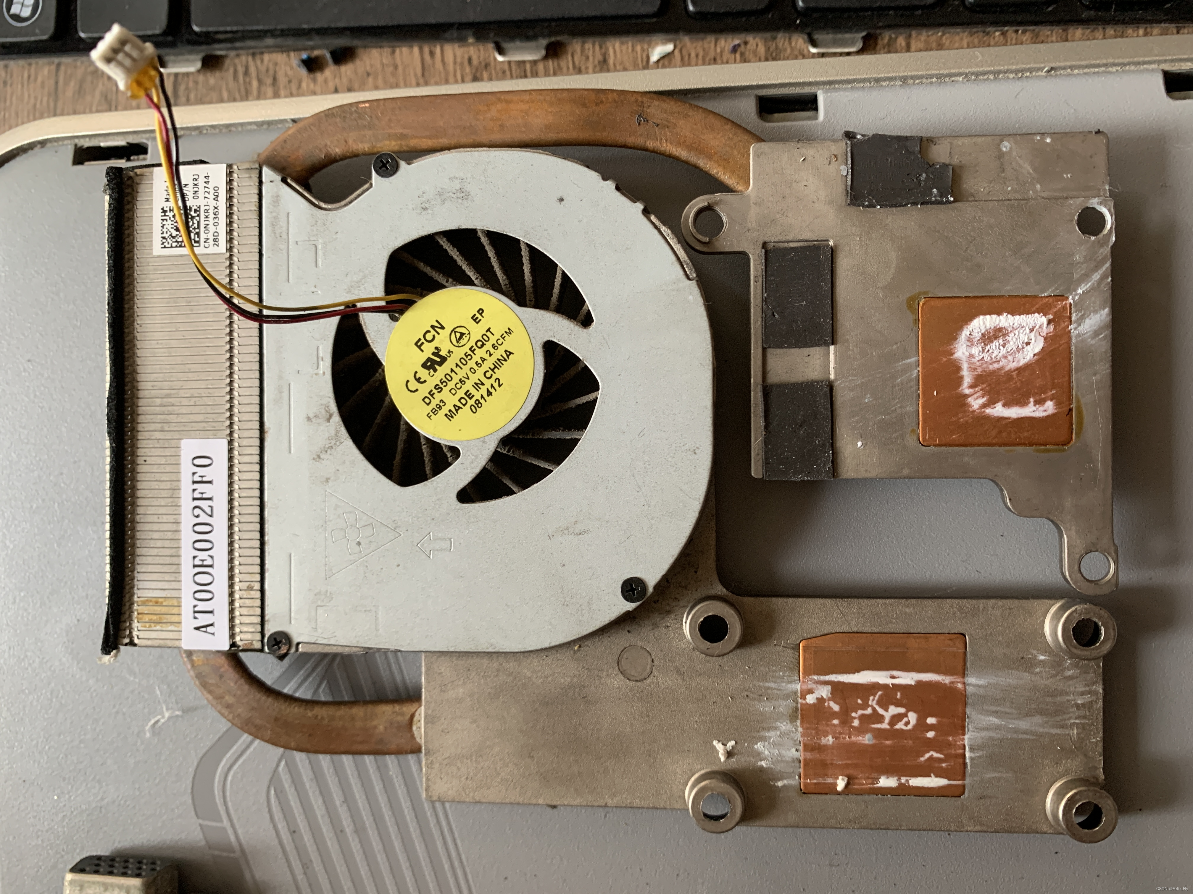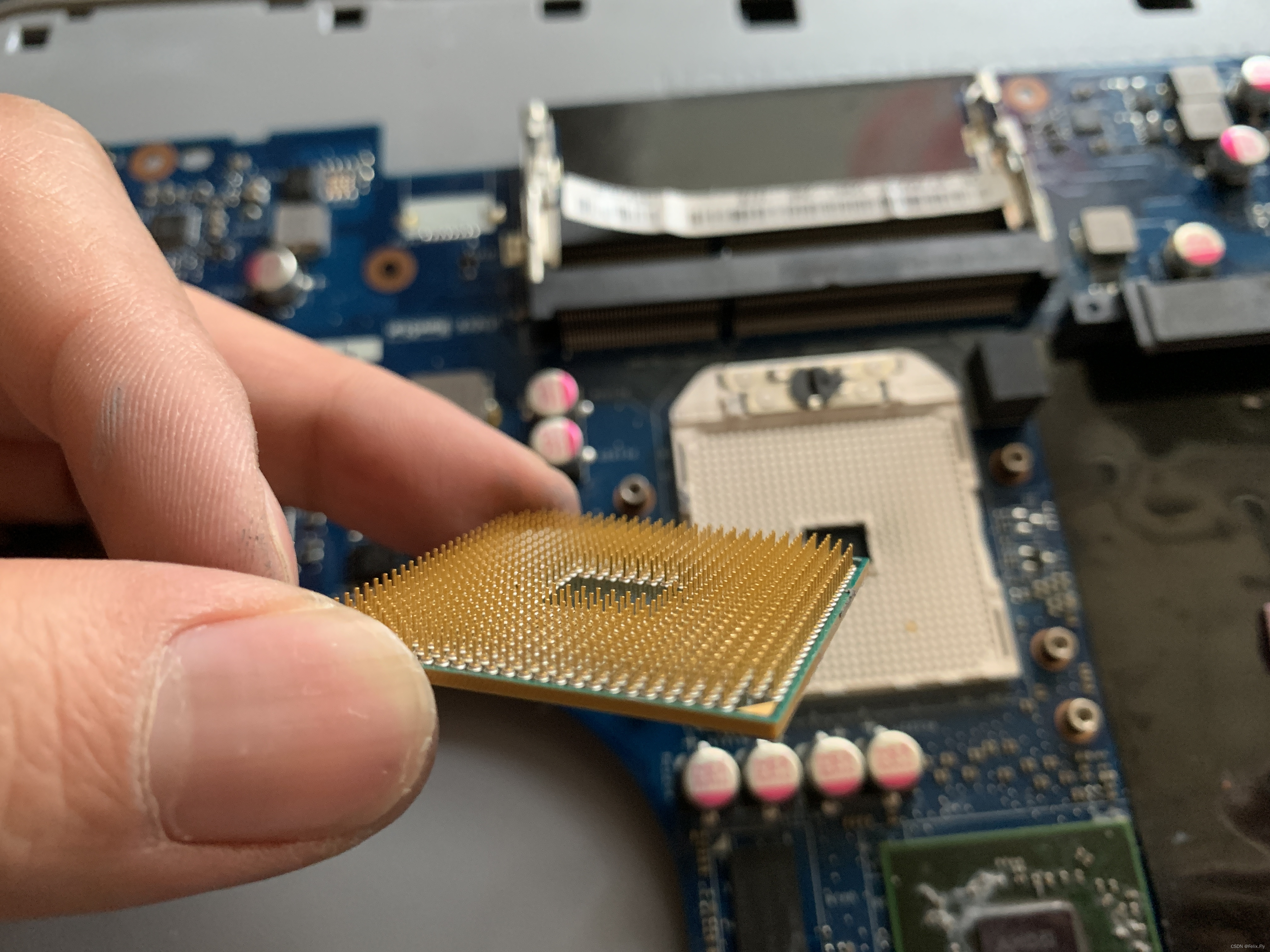 拿掉风扇和散热铜管,来到了最关键的一步:可以看到CPU和GPU,说明这两位是功耗大户: