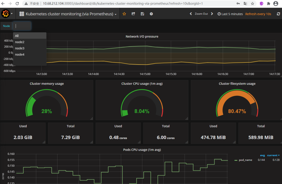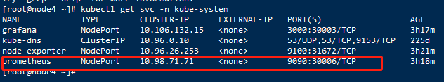 spec:ports:- name: httpport: 9100nodePort: 31672protocol: TCPtype: NodePortselector:k8s-app: node-exporter