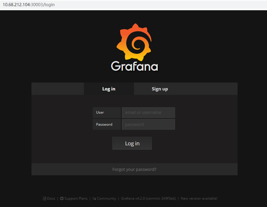 spec:replicas: 1selector:matchLabels:app: grafanatemplate:metadata:labels:app: grafanacomponent: corespec:containers:- image: grafana/grafana:4.2.0name: grafana-coreimagePullPolicy: IfNotPresent# env:resources:# keep request = limit to keep this container in guaranteed classlimits:cpu: 100mmemory: 100Mirequests:cpu: 100mmemory: 100Mienv:# The following env variables set up basic auth twith the default admin user and admin password.- name: GF_AUTH_BASIC_ENABLEDvalue: "true"- name: GF_AUTH_ANONYMOUS_ENABLEDvalue: "false"# - name: GF_AUTH_ANONYMOUS_ORG_ROLE# value: Admin# does not really work, because of template variables in exported dashboards:# - name: GF_DASHBOARDS_JSON_ENABLED# value: "true"readinessProbe:httpGet:path: /loginport: 3000# initialDelaySeconds: 30# timeoutSeconds: 1volumeMounts:- name: grafana-persistent-storagemountPath: /varvolumes:- name: grafana-persistent-storageemptyDir: {} 第二步:创建grafana-svc.yaml文件,文件内容如下: