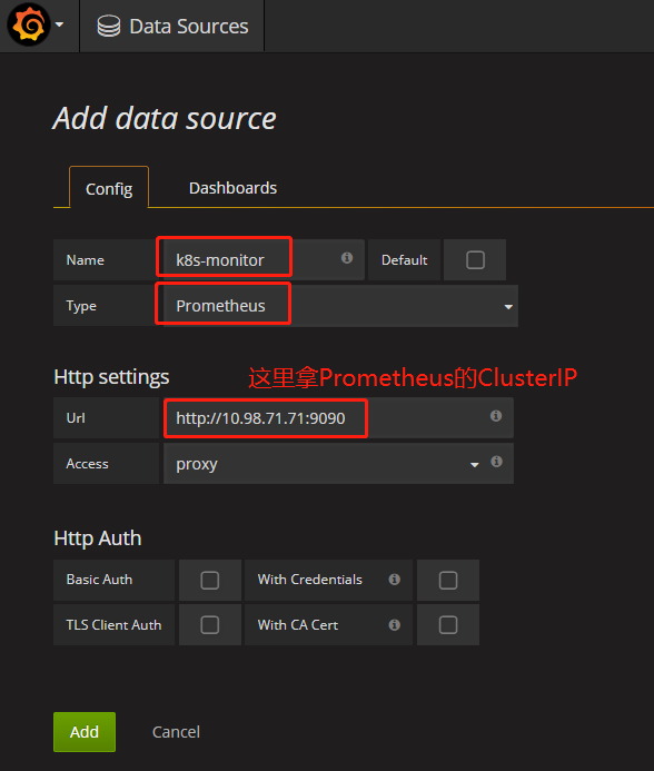 第四步:查到Prometheus的集群IP和端口,注意,这里一定要用ClusterIP,和代理转发到容器的端口(对应svc的port配置值):