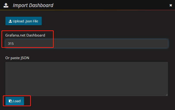 第七步:输入Prometheus网络模板ID,这里选择ID为315的模板进行统计: