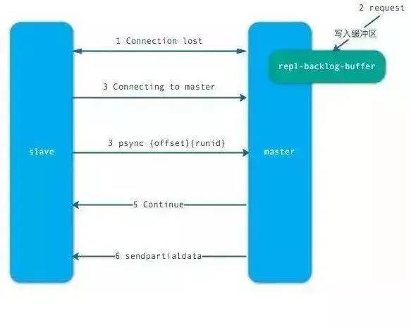 当从节点正在复制主节点时,如果出现网络闪断或者命令丢失等异常情况时,从节点会向主节点要求补发丢失的命令数据,主节点的复制积压缓冲区将这部分数据直接发送给从节点。