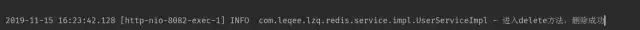 可以看出,这里已经从缓存中获取数据了,因为上一步 add 方法已经把 id=4 的用户数据放入了 Redis 缓存 3、调用删除方法,删除 id=4 的用户信息,同时清除缓存: