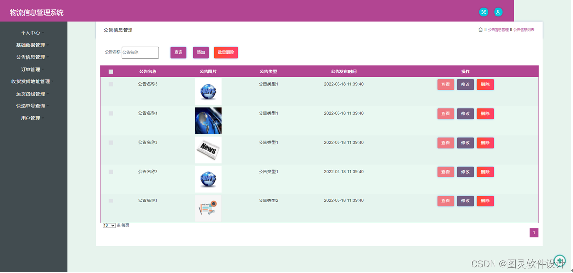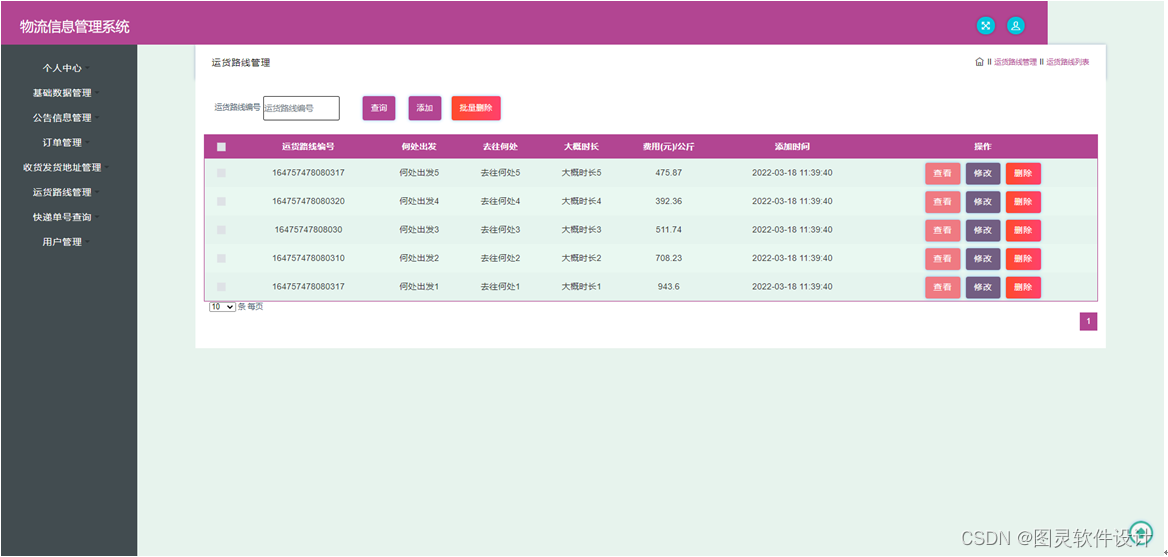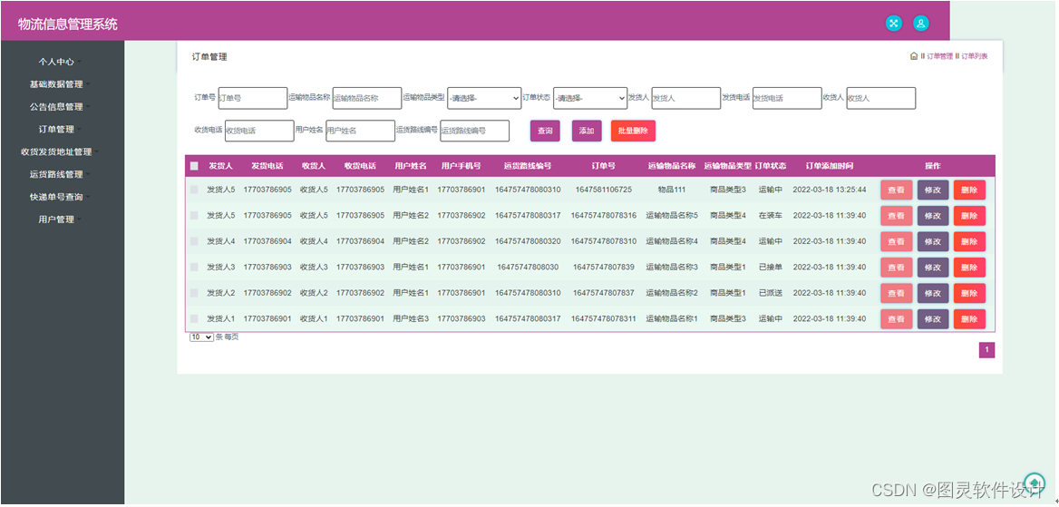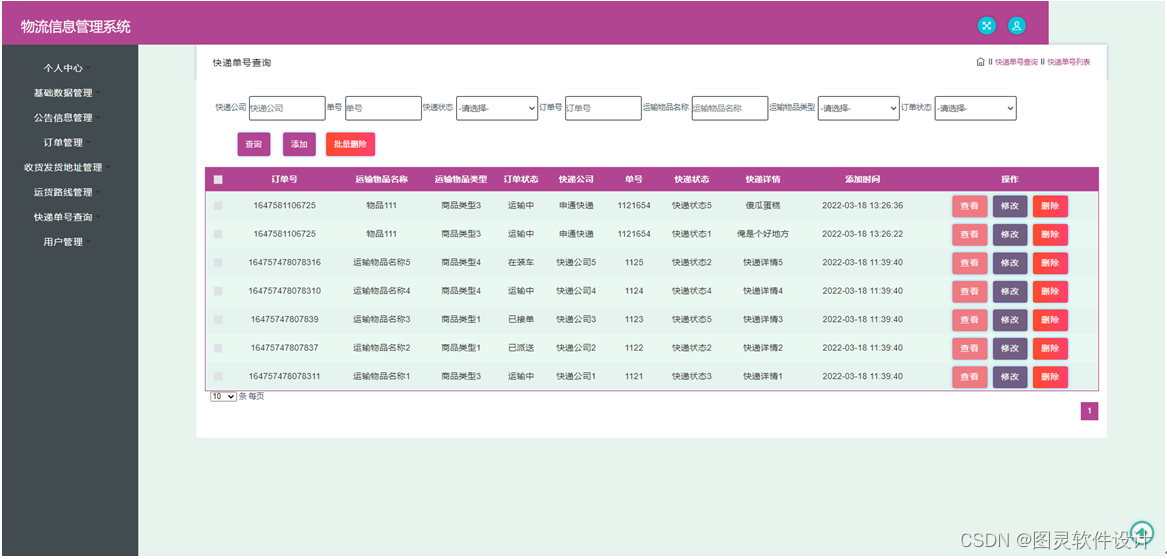 《基于SSM框架的物流信息管理系统》该项目含有源码、论文等资料、配套开发软件、软件安装教程、项目发布教程等