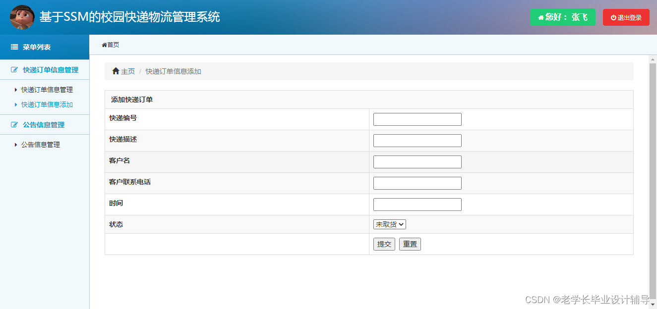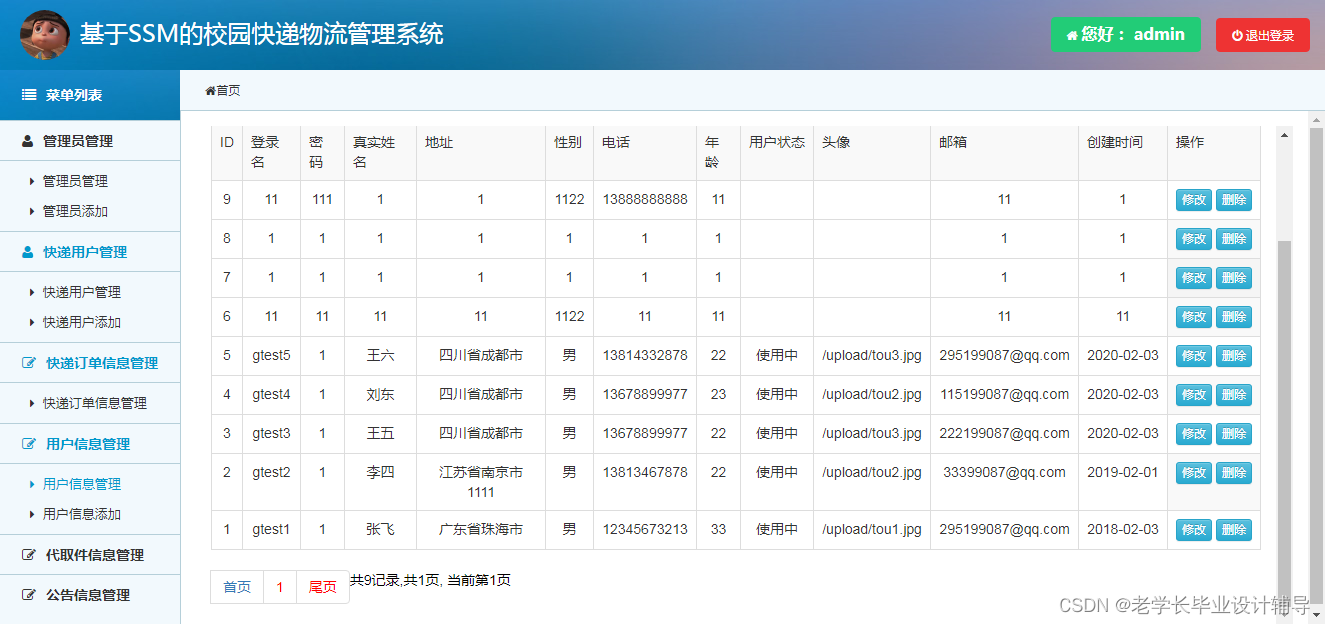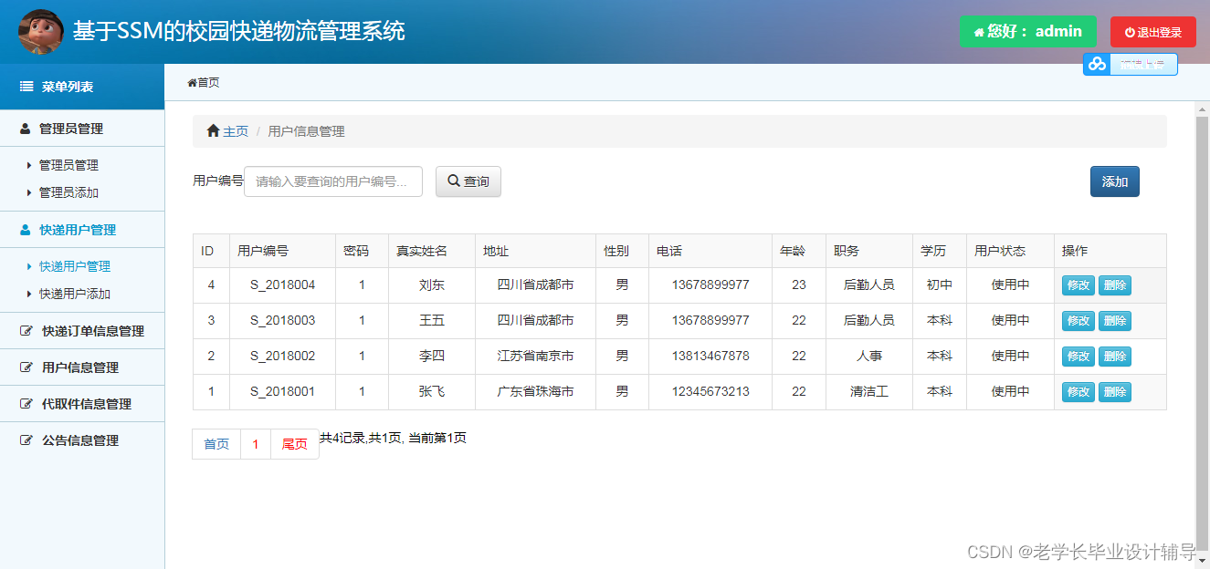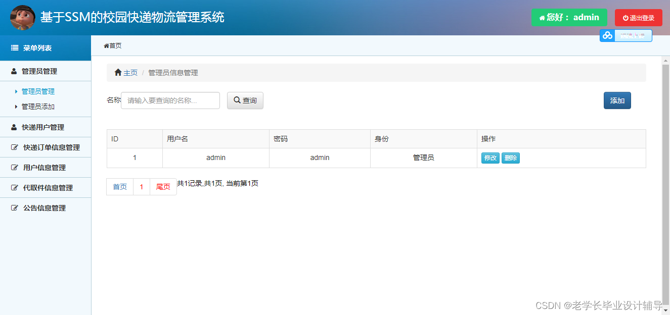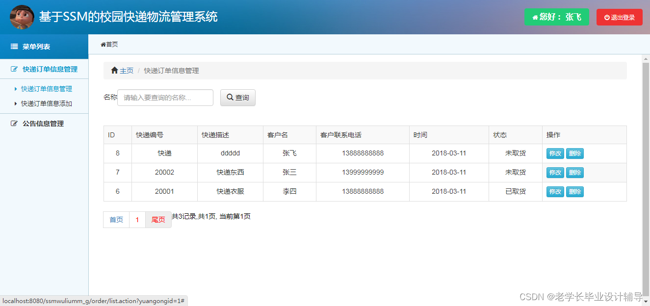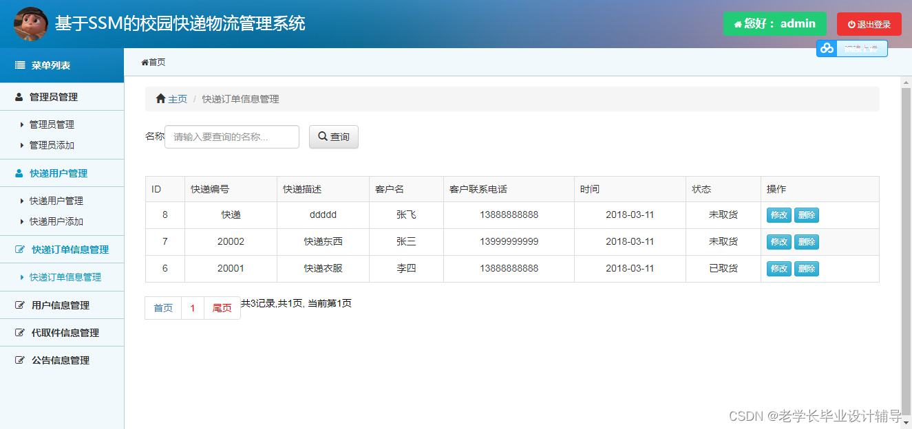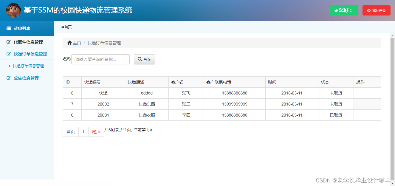 Hi,大家好,今天分享的源码是《ssm校园快递物流管理系统》。