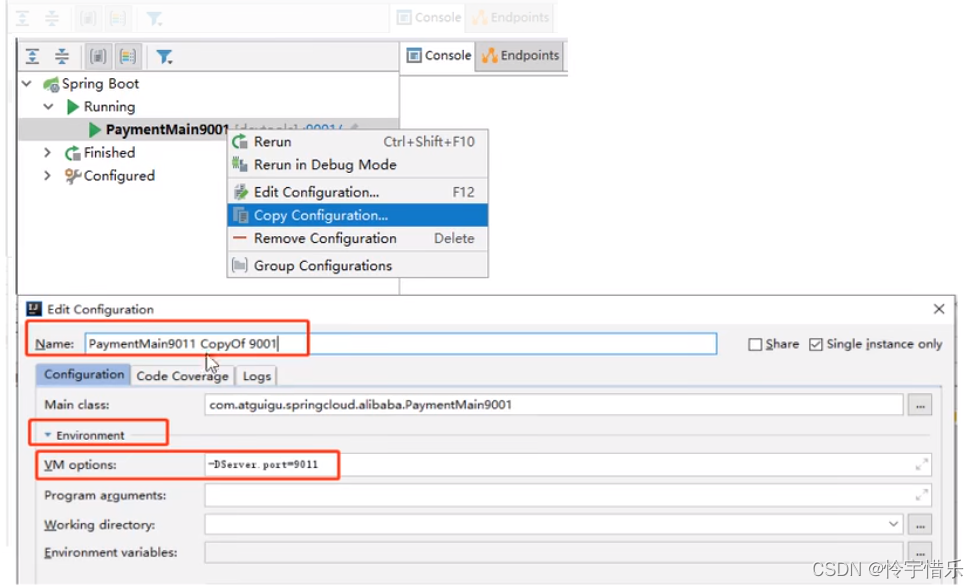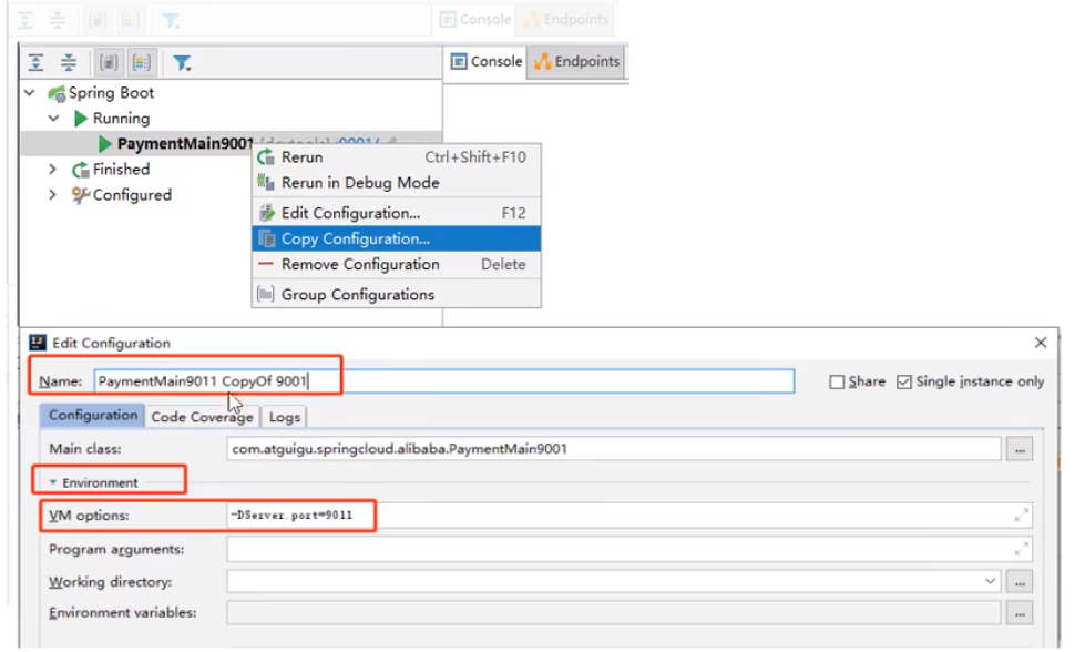 8.为了下一章节演示nacos的负载均衡,参照9001新建9002