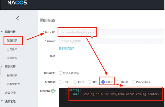 3.file-exetension为配置内容的数据格式,可以通过配置项spring .cloud.nacos.config.file-extension来配置。目前只支持properties和yaml类型。