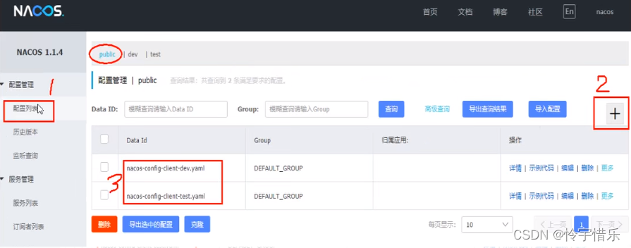 1.Nacos默认的Namespace是public,Namespace主要用来实现隔离