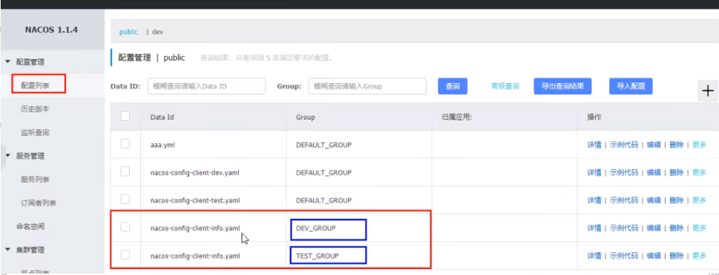 3.bootstrap+application(在config下增加一条group的配置即可。可配置为DEV_GROUP或TEST GROUP)