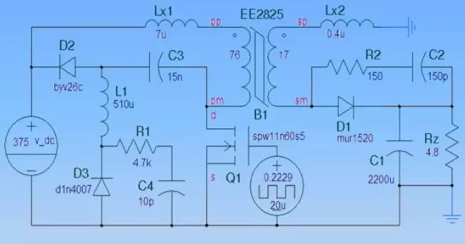 ● 引起电压尖峰的电感可能是:变压器漏感、线路分布电感、器件等效模型中的感性成分等。