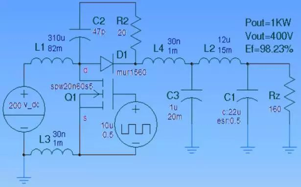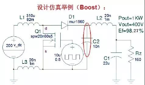 将开关管Q1、拓扑续流二极管D1和一个无损的拓扑电容C2组成一个在布线上尽可能简短的吸收回路。