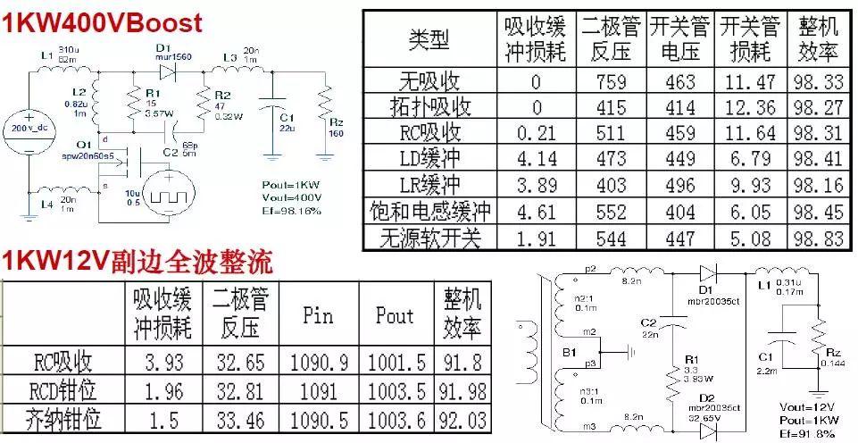 ● 无源无损软开关电路效率明显高于其他缓冲吸收方式,与有源软开关电路效率相差无几。因此只要能够实现无源软开关的电路,可不必采用有源软开关。