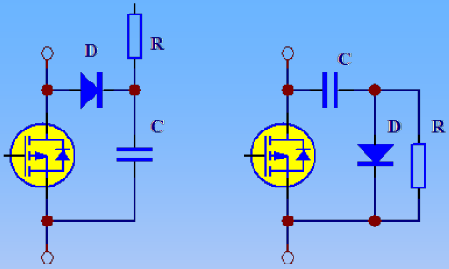 ● RC 吸收,其中C可与振铃(结)电容大致相当,R 按RC吸收原则选取。