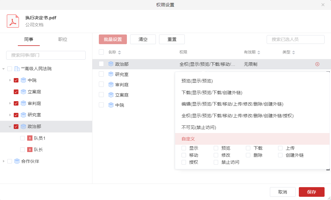 采用创新技术底层,建立统一云端存储,提供”组织级”文档分类分级管理、线上检索编辑、便捷流转共享、高效移动办公、多人多端协作、内外网文件安全交换以及数据备份等线上协同解决方案,能有效解决法院办公文件存储分散,管理和协作效率低下等办公痛点。