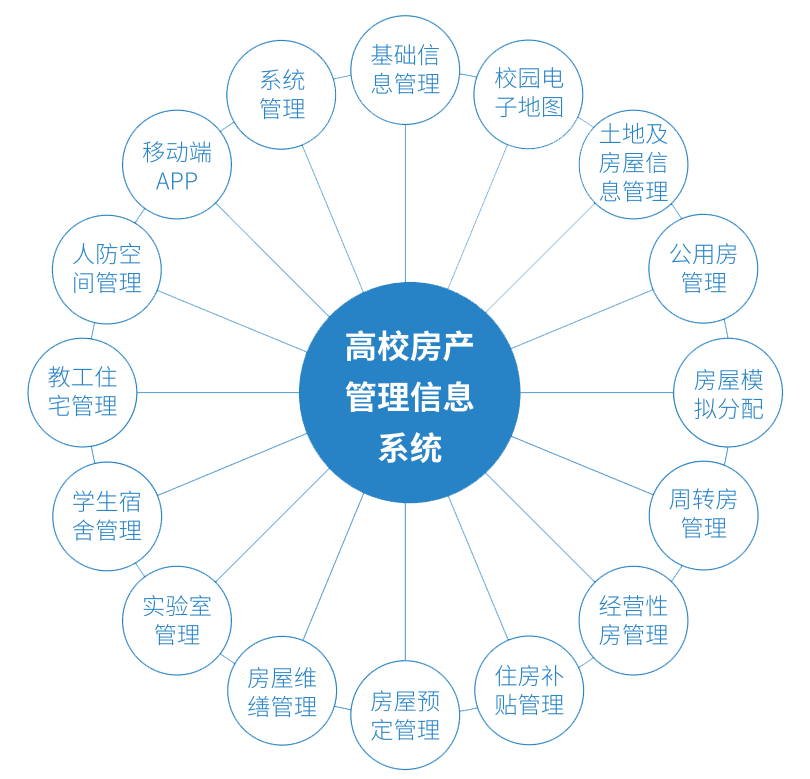 4、公用房管理:对全部公房进行动态管理,用房线上申请、审核、分配、回收、合同打印及签署的全流程监管,通过邮件、短信提醒、进度查询等,使房屋分配过程完全透明化;对房屋档案及多类型附件管理,附件和数据对映关联;各二级单位/教职工可查询本单位用房数据、可申请公用房、申请变更;房产图形管理实现对楼宇的CAD图、全景图、照片、三维BIM图进行管理、房屋拆分及合并、发布和数据关联;多维度查询统计实现固定报表一键导出/上报:如高基表511、521、财基报表等多种高级报表。