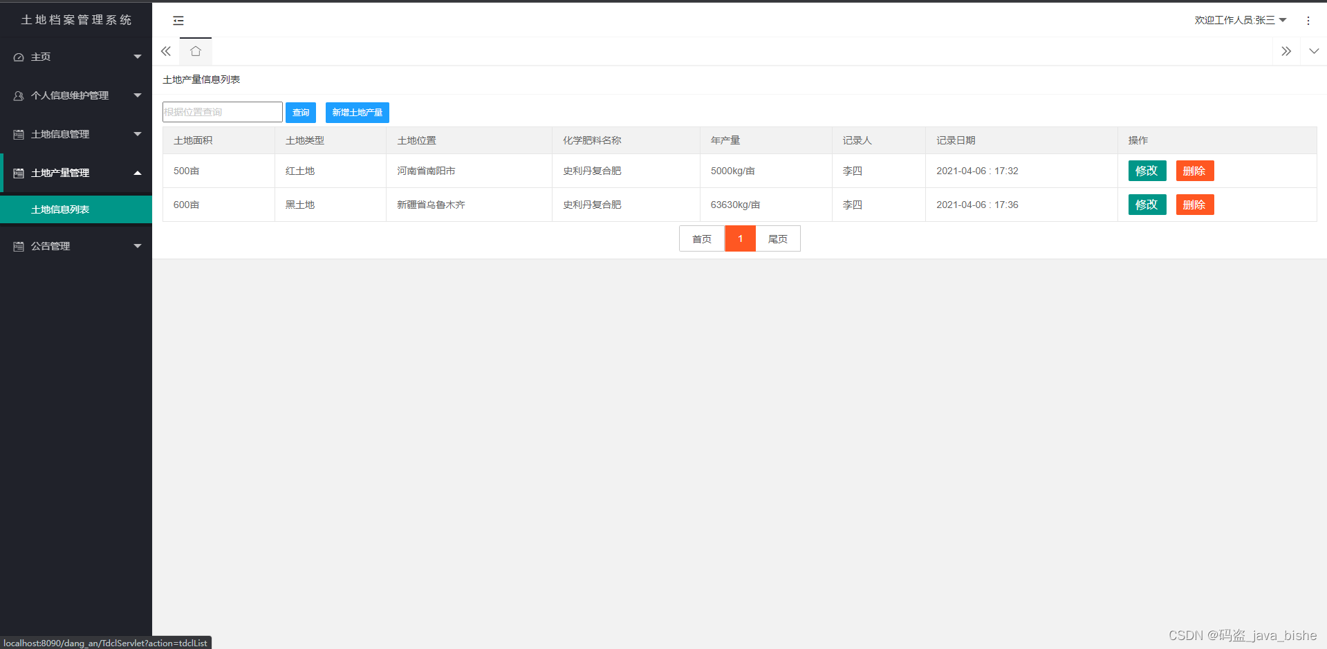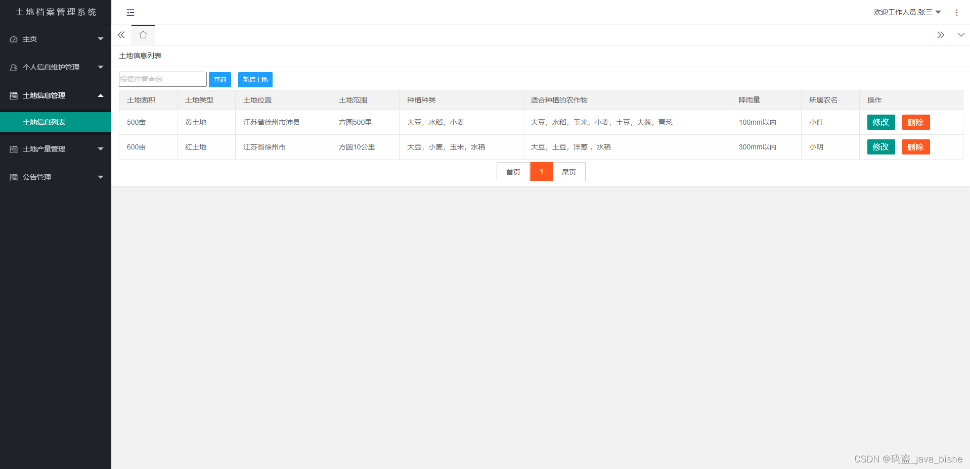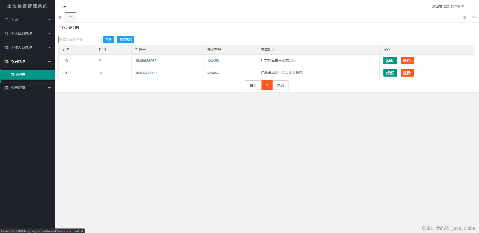 系统一共分为3个角色分别是:工作人员,管理员,农民