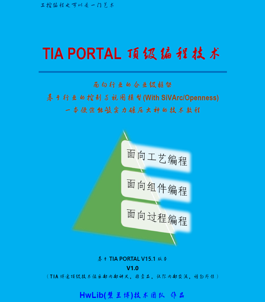 不过综合来看,框架的优点要远远大于它的缺点。这也是为什么现在的软件工程行业优秀的框架层出不穷,Angular、Spring、vue等等,当然对于工业自动化行业也是同样的道理。我们可以有面向基础设备的通用框架,也可以有面向某一个行业的企业级框架。可以有基于TIA Portal的框架,也可以有基于集成架构(IA)的框架。我们希望,随着本教程的推出,我们工业自动化行业也能涌现出一批优秀的项目框架!