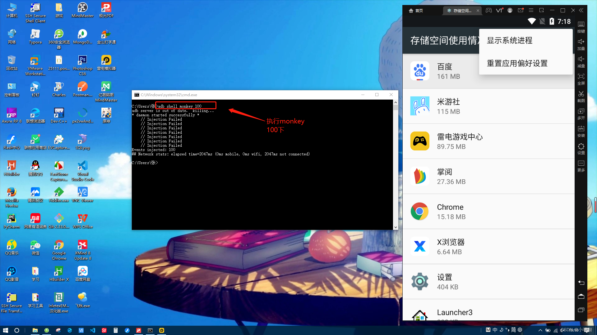 b)在PC上adb shell 进入Android系统,通过执行 monkey {+命令参数} 来进行Monkey 测试