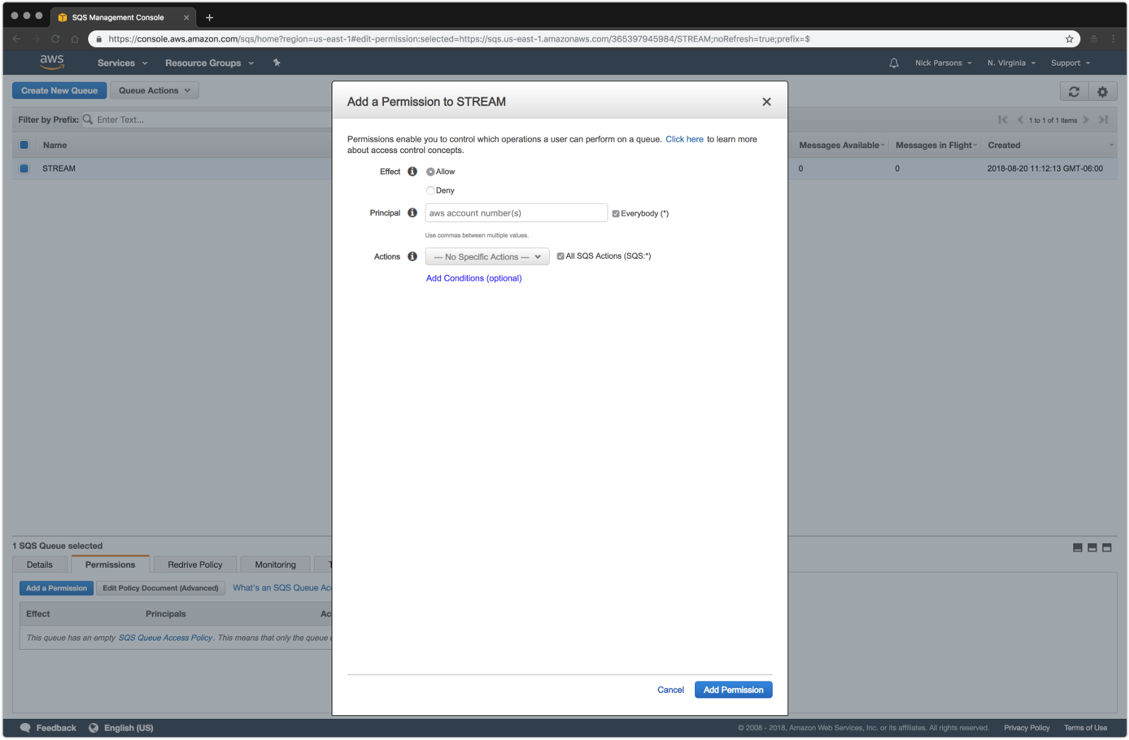 为了允许Lambda函数访问SQS,需要进行一些次要配置。 幸运的是,此步骤只需要单击几下即可。