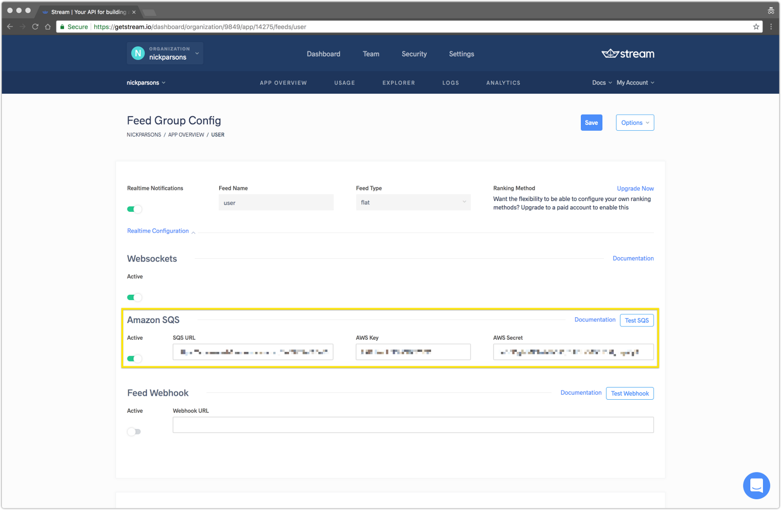 尽管websocket是侦听更改的首选方法,但SQS通知在feed基础结构中占有特殊位置。 由于您可以与收到的结果进行交互,因此Stream确实具有提供实时功能的能力。 例如,您可以侦听提要的更改,并通过例如发给用户的电子邮件进行回复,以诱使他们在购买时拉动触发器,根据您的应用程序中执行的操作发送SMS消息,其中包括数百种其他情况。
