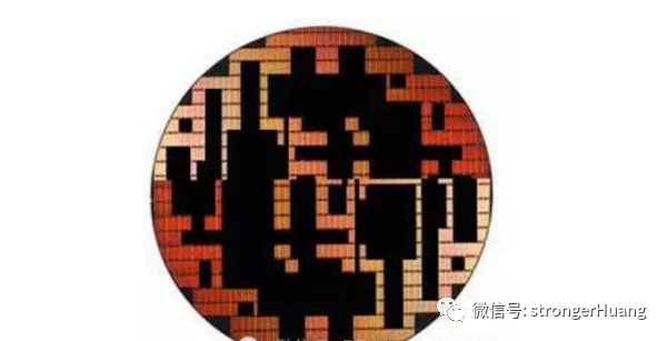品质合格的die切割下去后,原来的晶圆成了下图的样子,是挑剩下的Downgrade Flash Wafer。残余的die是品质不合格的晶圆。黑色的部分是合格的die,会被原厂封装制作为成品NAND颗粒,而不合格的部分,也就是图中留下的部分则当做废品处理掉。