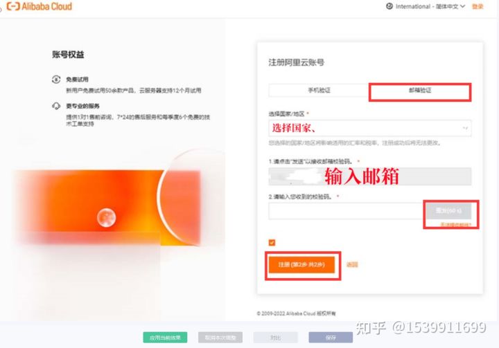 5.选择邮箱验证,地区选择香港,邮箱接个验证码