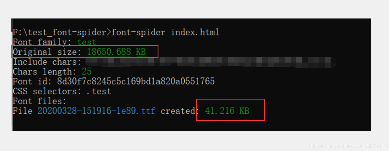 运行完之后文件夹下会多出来一个文件夹,是备份的原来的字体文件,同时会生成一个新的体积非常小的字体文件,将此文件直接引入项目中即可。