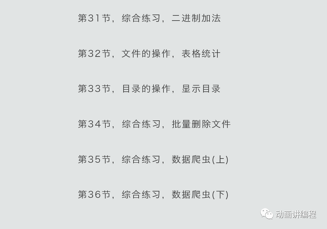在这36节课中,每节课都高效的浓缩了相应知识点,5~8分钟,让观看的同学,充分利用碎片化时间学习,直击编程中的各个难点,最终把python学的明明白白。