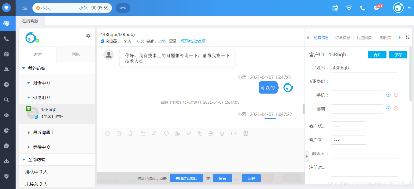 有人提出:为什么不能像微信一样,技术和业务客服跟用户拉个群,技术和业务客服一起处理,效率会更高。那么,在客服系统上能不能做到这一点呢?答案是肯定的。