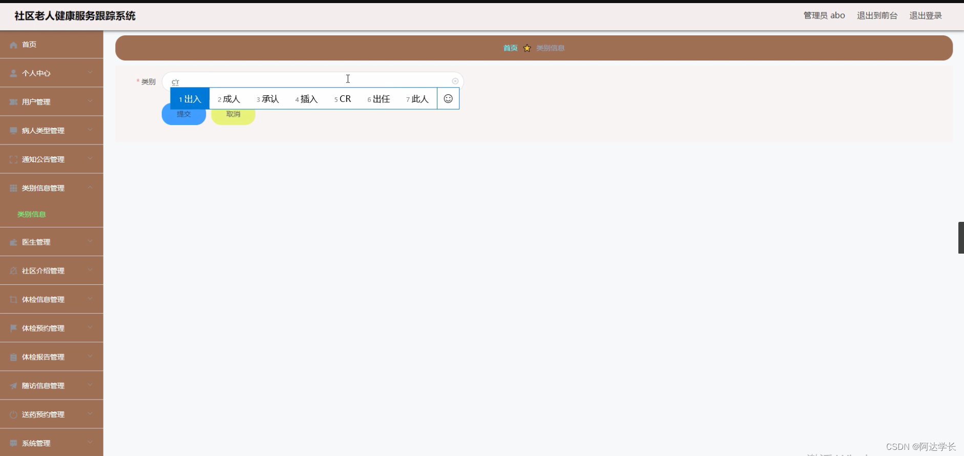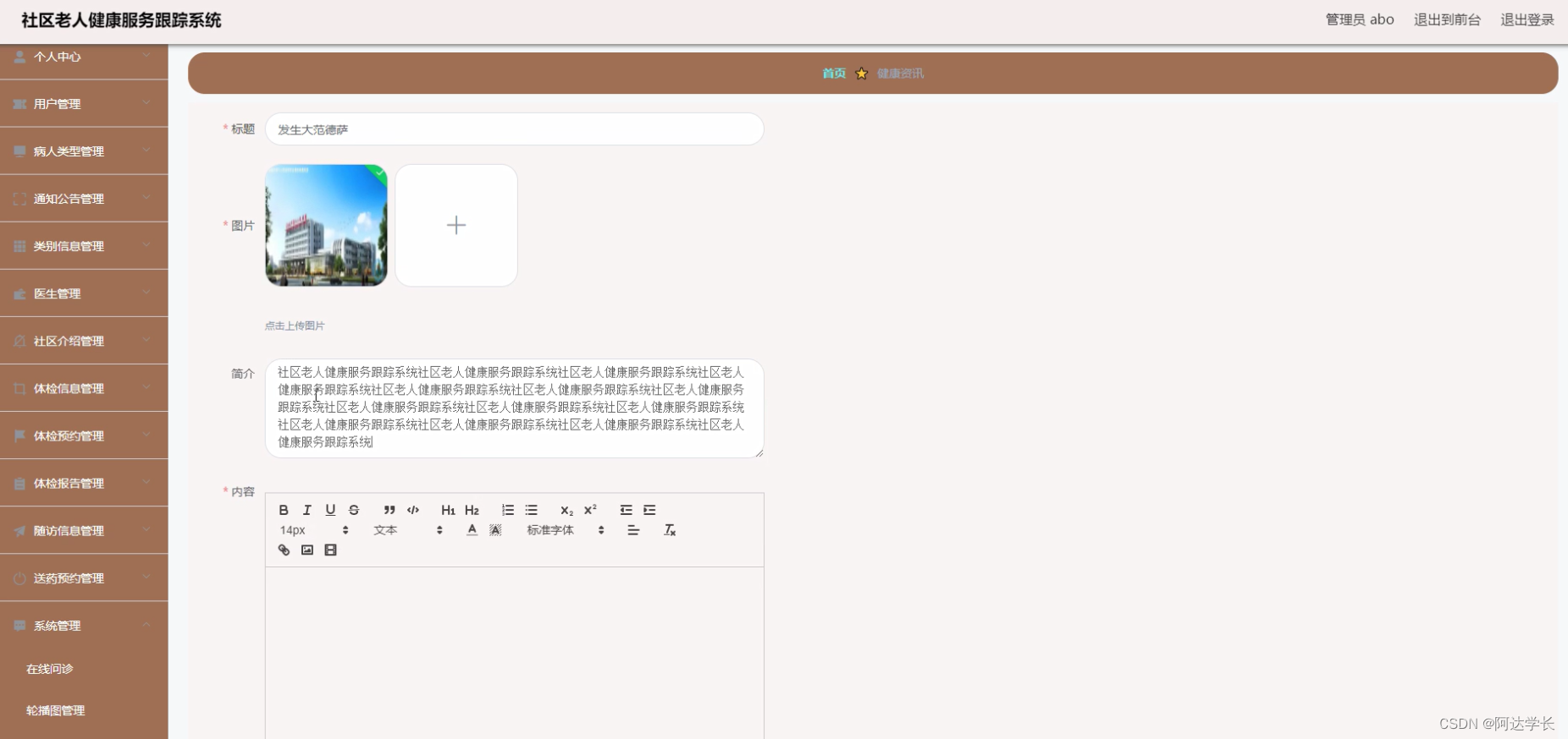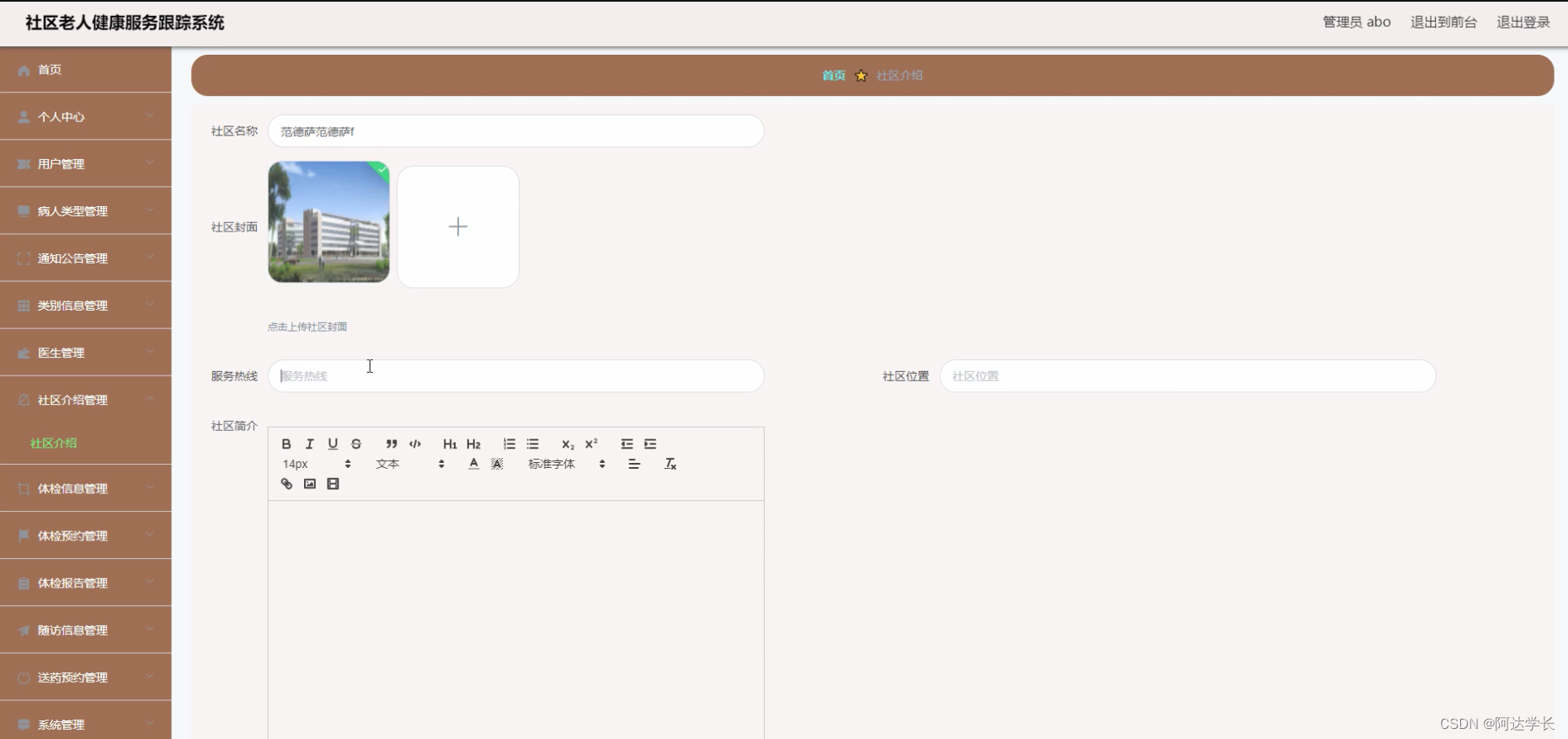 JAVA毕设项目社区老人健康服务跟踪系统(java+VUE+Mybatis+Maven+Mysql)