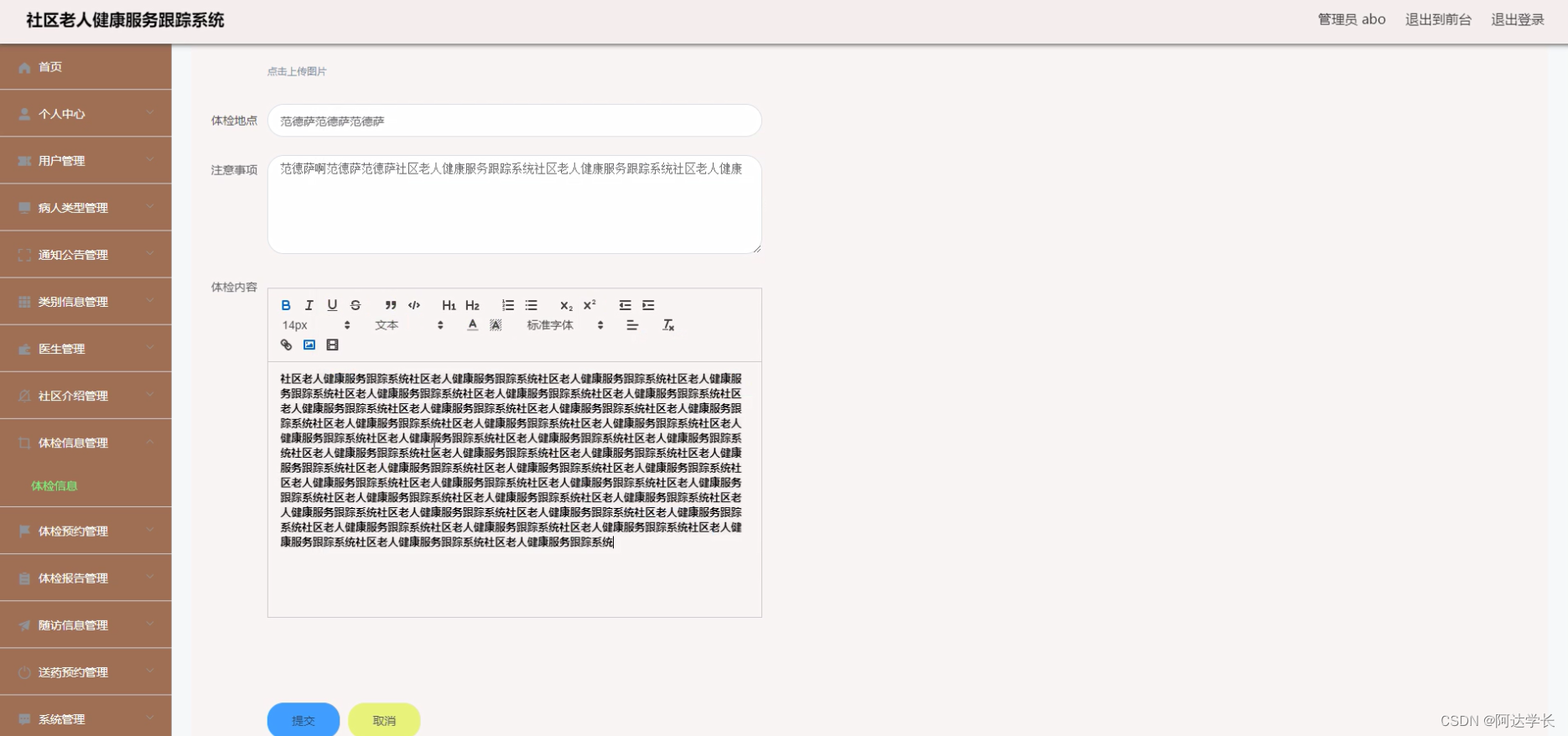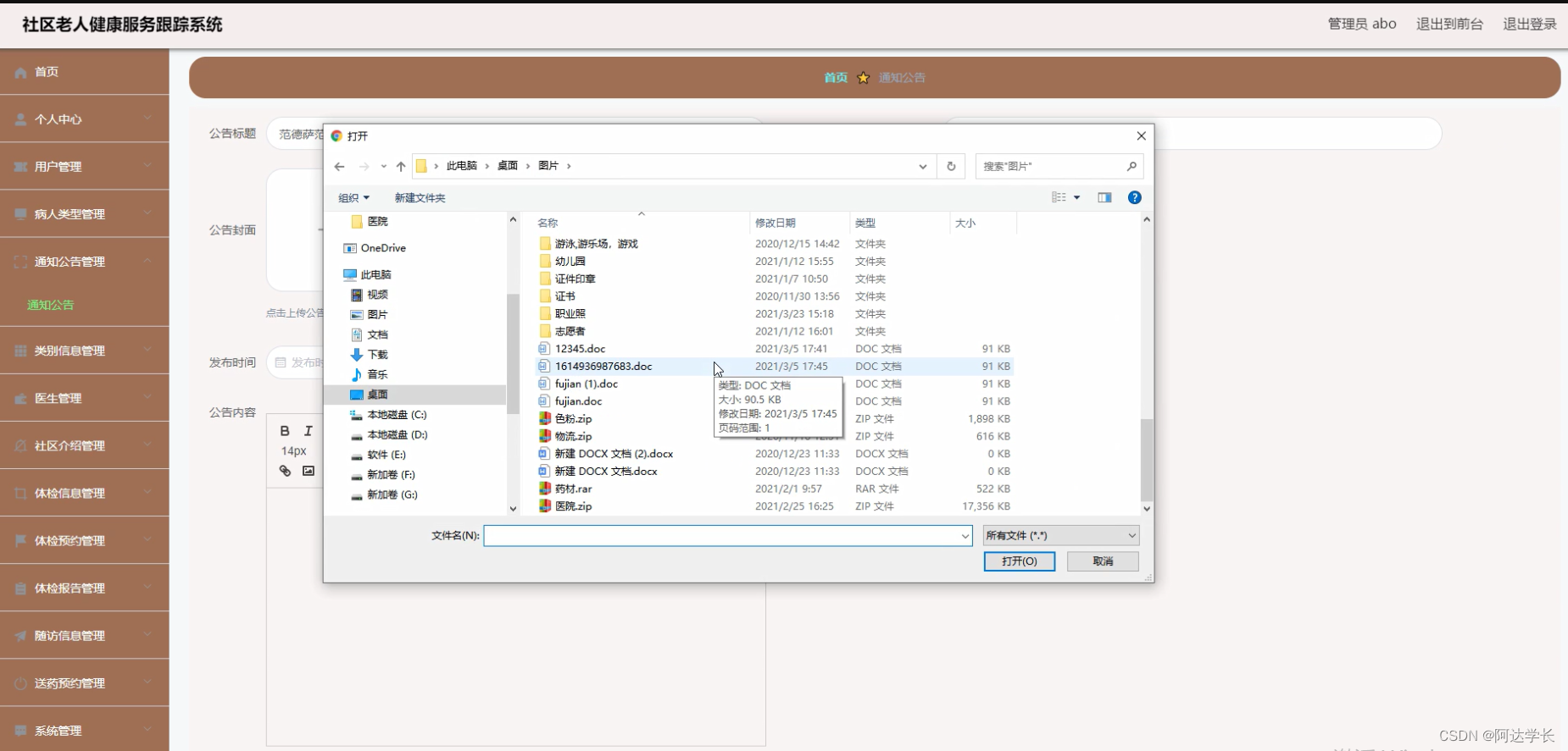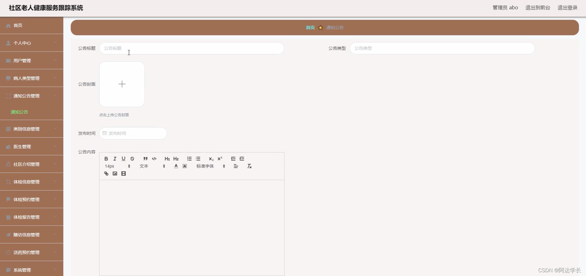 JAVA毕设项目社区老人健康服务跟踪系统(java+VUE+Mybatis+Maven+Mysql)