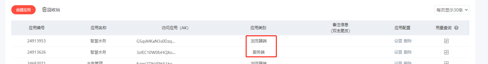 申请账号咱们不赘述,在控制台应用管理里面创建应用,主要是为了获取AK