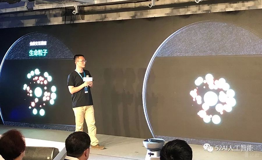 此外,为了体现机器人的生命感,团队加入一种新的交互方式:生命粒子。所谓生命粒子,就是在机器人的头部显示屏上,以抽象符号和图形组合表达情感,而非模拟人类的脸部表情。