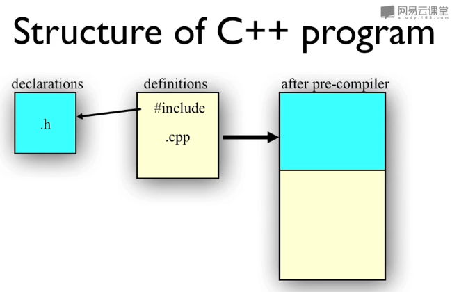 2. 类的声明(declaration)和函数原型(prototypes)在 .h 文件(头文件)中;