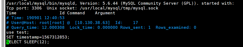 可以看到使用的库、运行的时间戳及慢查询sql。