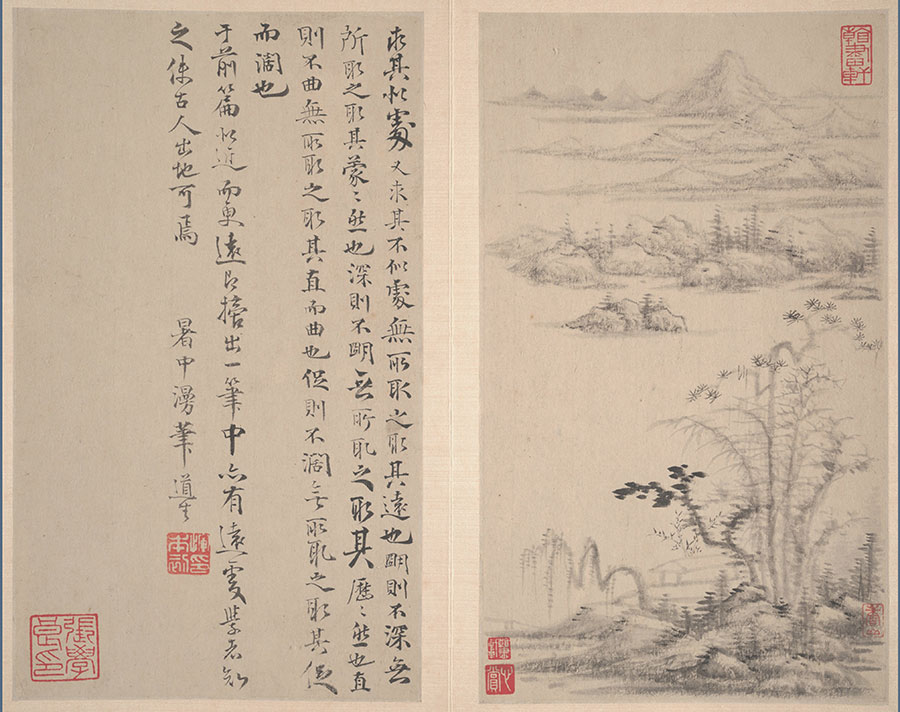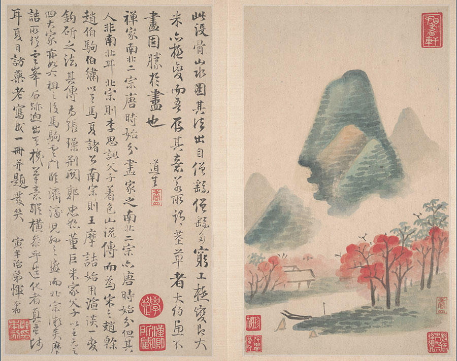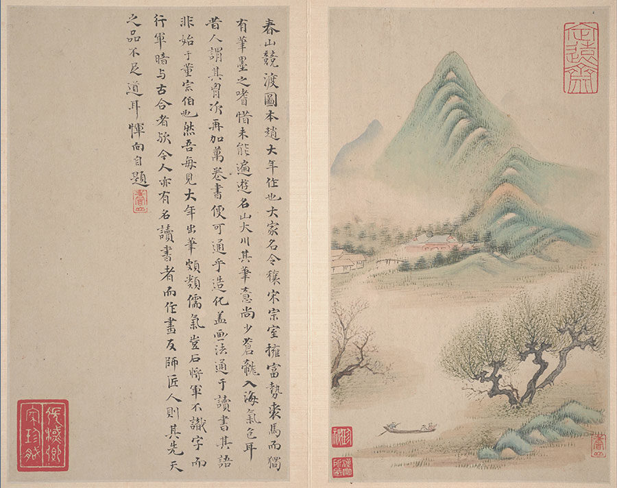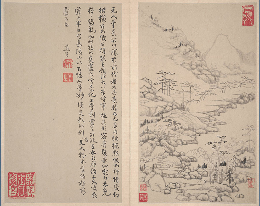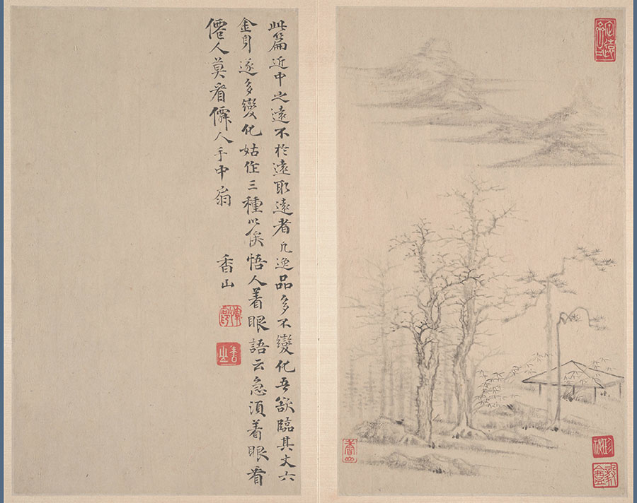 恽向(1586--1655)明代画家。原名本初,字道生、曙臣,号香山,武进(今属江苏)人。崇祯末举贤良方正,授内阁中书舍人。擅诗文工山水,早年学董源,巨然,以悬肘中锋作画,骨力圆劲,浓墨润湿,纵横淋漓,自成一派,晚年敛笔于倪瓒、黄公望的风格,惜墨如金,挥洒自如,妙合自然。由于他常往来于齐鲁之间,并登临泰山,故笔下山水自然雄浑之气。他曾为周亮公画山水,自题云:“逸品之画,笔似近而远愈甚,似元而有愈甚;其嫩处如金,秀处如铁,所以可贵,未易为俗人道也。”